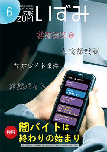 広報いずみ令和7年 広報いずみ令和7年10月号【Over The Waves】 広報いずみ令和7年9月号【まだまだ万博go!】 広報いずみ令和7年8月号【市政運営方針を発表】 広報いずみ令和7年7月号【熱中症から命を守る】 広報いずみ令和7年6月号【闇バイトは終わりの始まり】 広報いずみ令和7年5月号【和太鼓で世界にPR】 広報いずみ令和7年4月号【槇尾学園 開校】 広報いずみ令和7年3月号【泉北高速鉄道から南海電鉄へ 和泉のまちと30年】 広報いずみ令和7年2月号【その乗り方、大丈夫?】 広報いずみ令和7年1月号【くるぞ、万博】